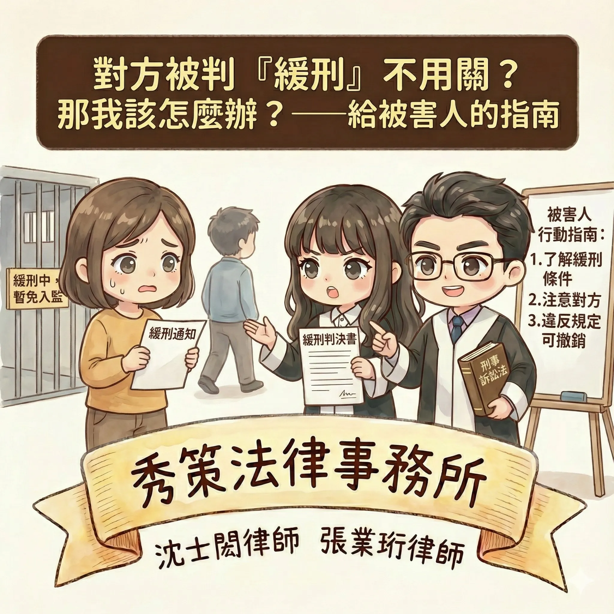 對方被判「緩刑」不用關?那我該怎麼辦?——給被害人的指南 #律師事務所 #律師推薦 #台北律師事務所 #新北律師推薦 #新北律師事務所 #刑事訴訟律師 #刑事訴訟律師推薦 #台北刑事訴訟律師推薦